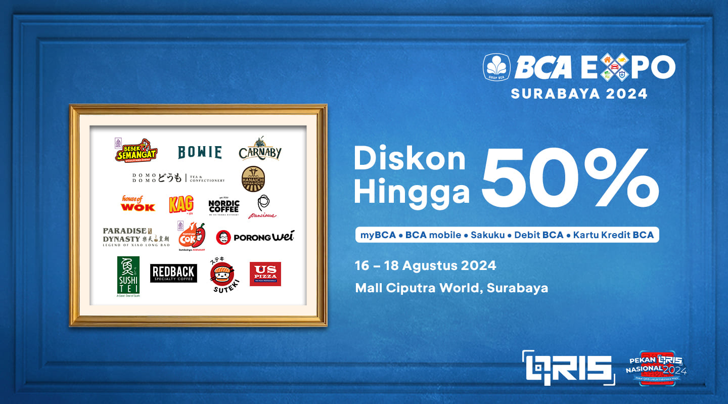 Valid for payment with Debit BCA, BCA Credit Cards and QRIS BCA (myBCA, BCA mobile, Sakuku)