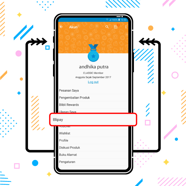 Open an online merchant application (e.g. Blibli.com), click “BliPay” and select OneKlik.