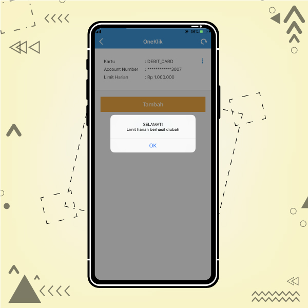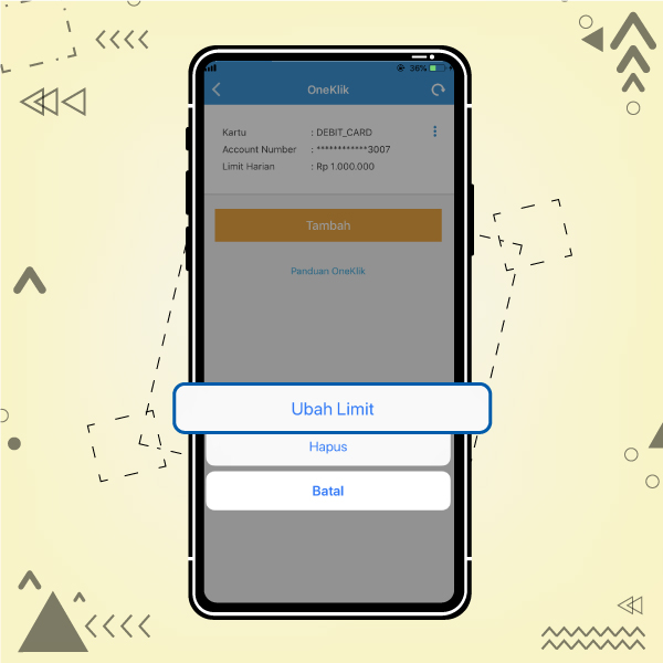 - Select the OneKlik menu on the online merchant application, select BCA Debit card number you want to change the limit for, then click “Ubah Limit”