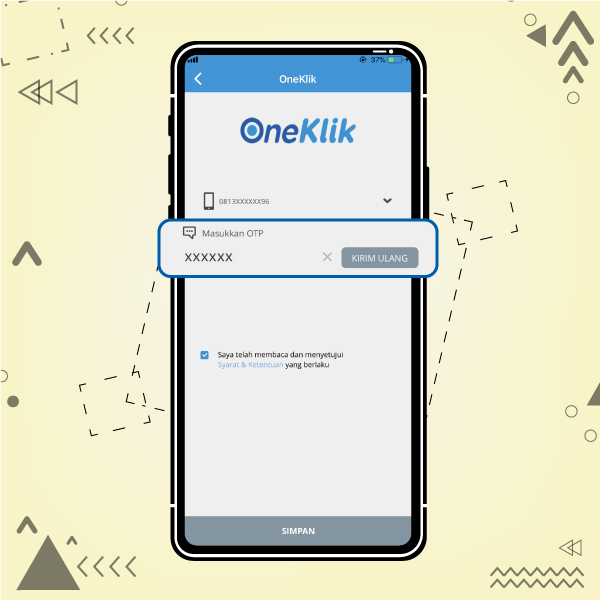 - Select the phone number to which the OTP code will be sent then enter the OTP code, tick on the terms & conditions, then click “Simpan”