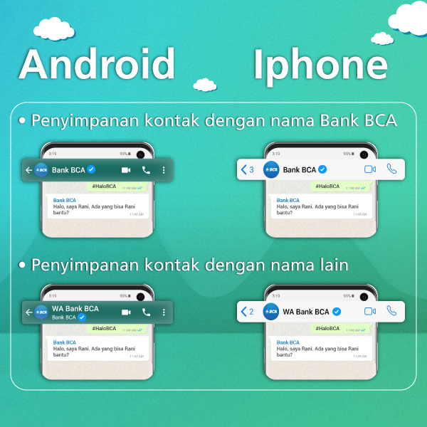 - Save BCA WhatsApp 0811-1500-998 in your phone contact by using the contact name “Bank BCA” ,so the verified badge will be displayed.