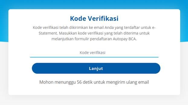 - Enter the verification code that you have received to continue the BCA Autopay registration form