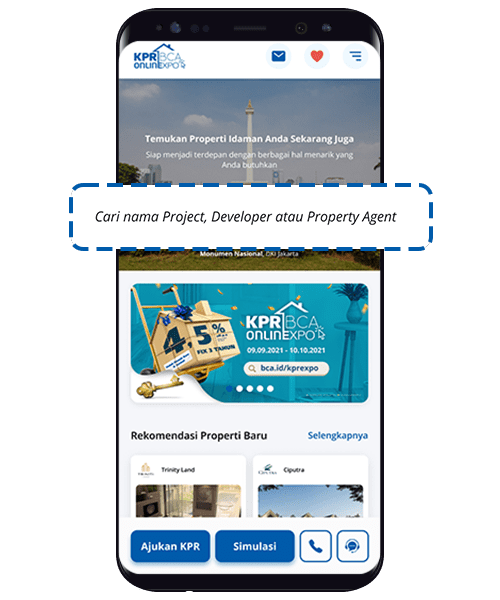 At KPR BCA ONLINEXPO this time, BCA offers special low and flexible mortgage interest rates, one of which is a 3-year fixed rate of 4.5% eff.p.a., which applies to new & old homes. At the KPR BCA ONLINEXPO, you can check your dream home in the following ways: