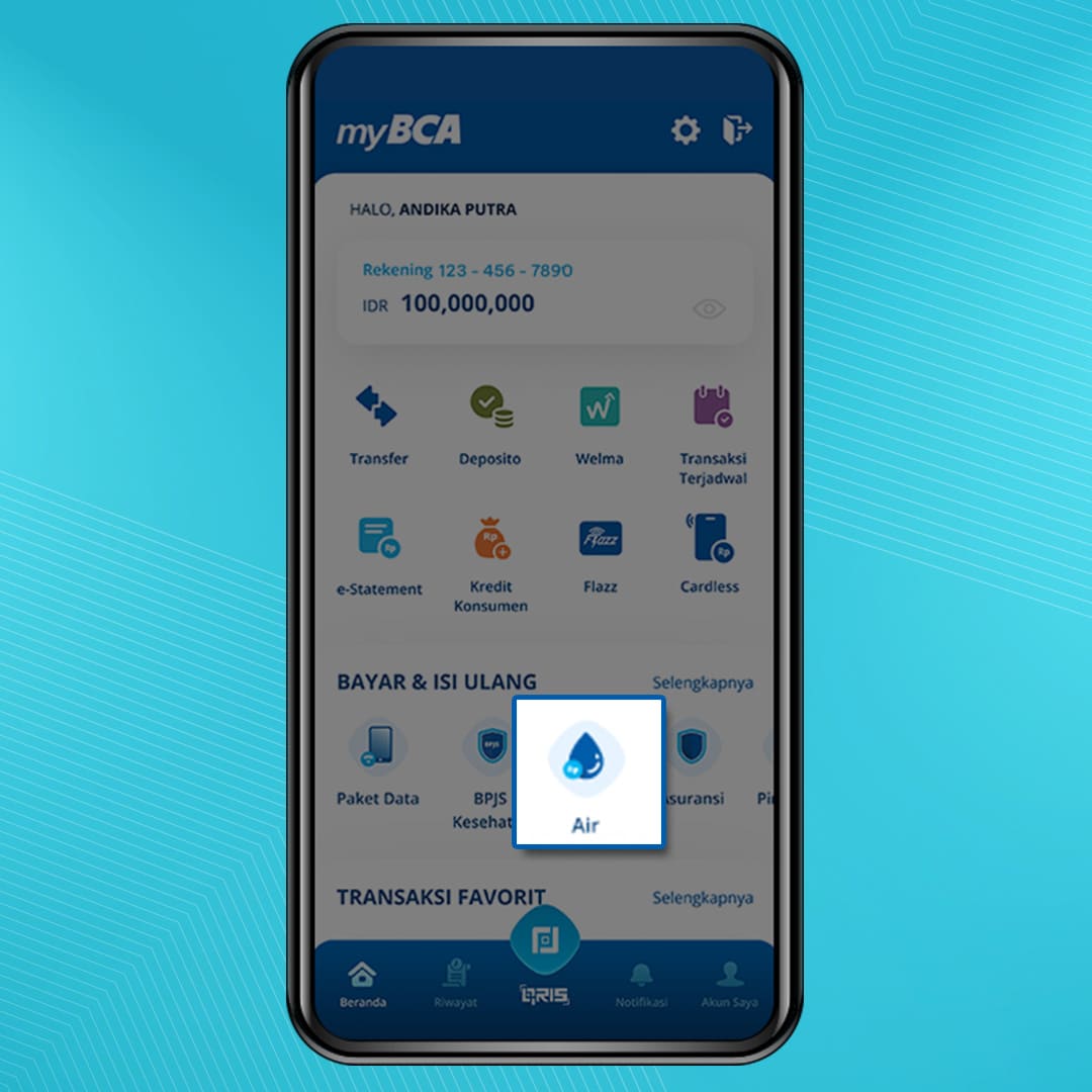 Login to myBCA and select the Air menu in the Bayar