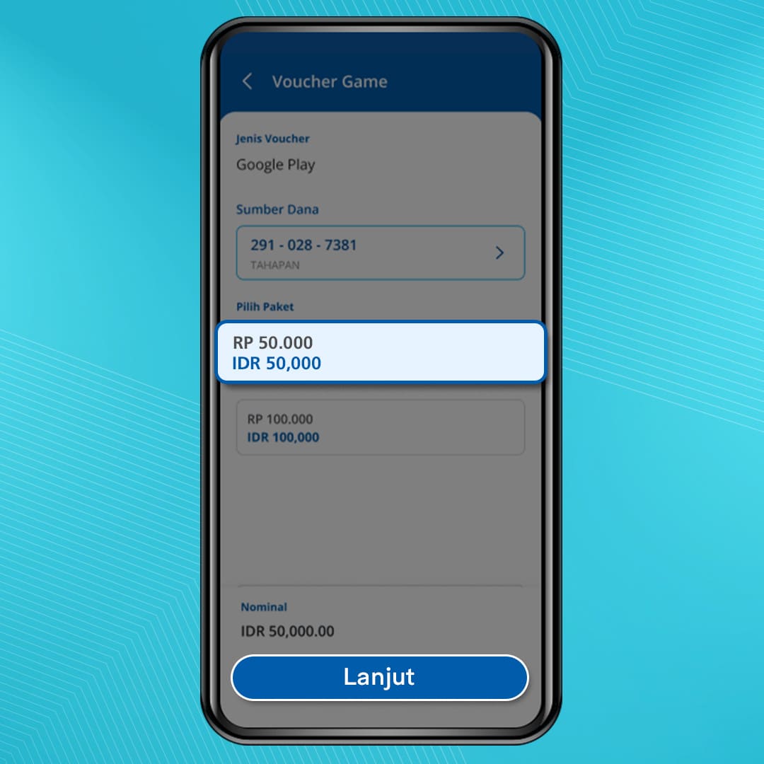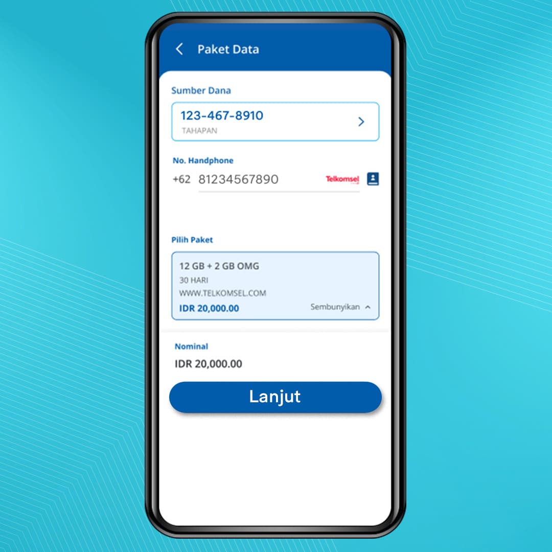 - Enter the mobile phone number and select the top-up amount, then click “Lanjut”