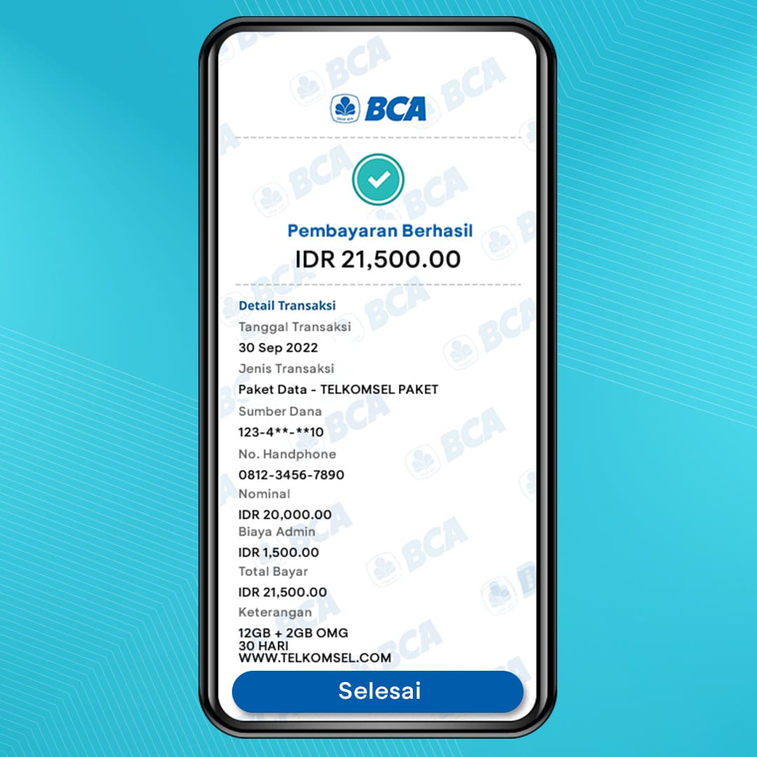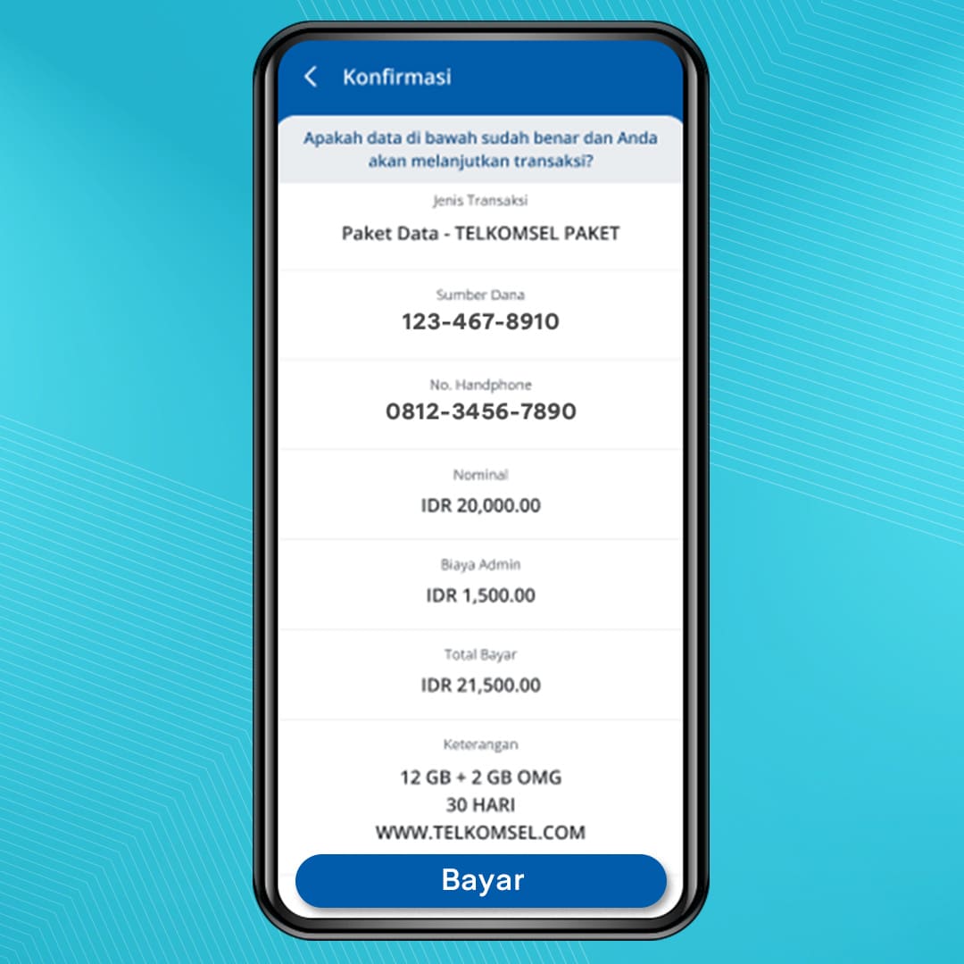 - Confirm the number and click “Bayar”. An admin fee of IDR3,000 per billing month applies.