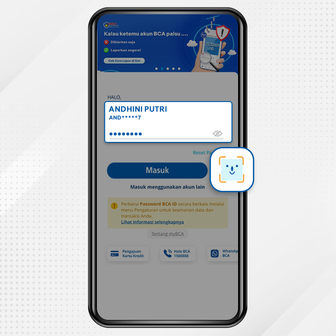 - Open the myBCA app, enter your ‘BCA ID & Password’ or use the ‘Enter with Biometric’ feature