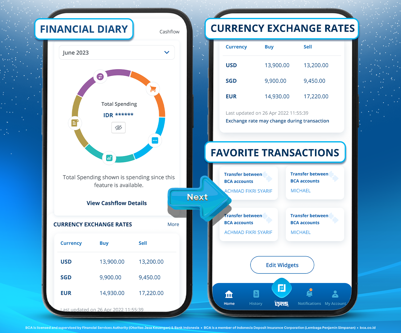 BCA offers a Widget feature on myBCA, located at the bottom of the home page screen within the myBCA application. There are three functions of the Widget setting. Let’s take a look!