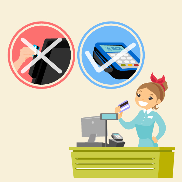 Have you ever heard about the double swipe practice? If you shop using a debit or credit card, and then the cashier swipes your card through the EDC machine and also the cash register, you must report that to us or the Bank of Indonesia (BI). This is because such practice may trigger the stealing of data and information contained in your debit or credit card.