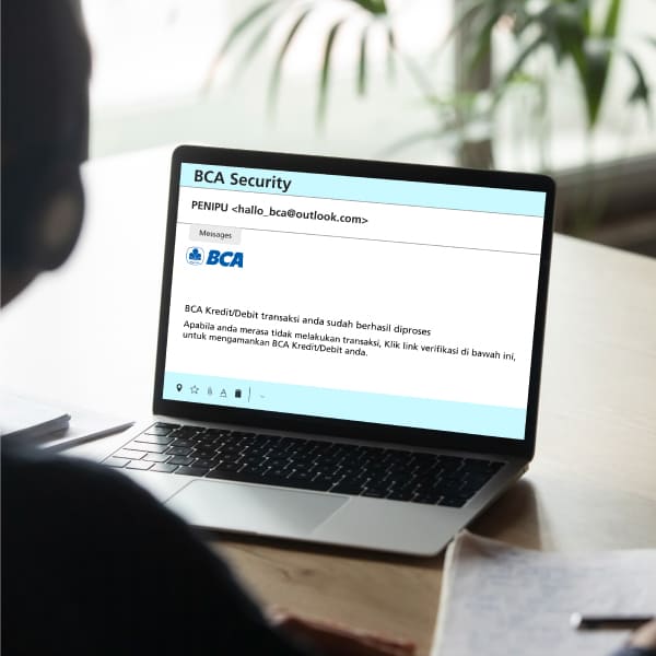 Be careful, because fraudsters are not only faking BCA phone numbers, social media accounts, and websites, but also BCA’s official email address for phishing to steal customers’ data and break into their bank account/credit cards.