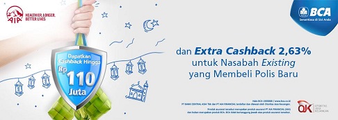- Extra cashbackfor old customers is 2.63% of the First Premium, with the requirement that they have already acquired a BCA-AIA policy before April 1, 2020 and is still active, and make a new policy purchase during the program period