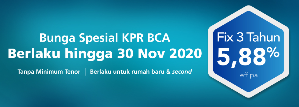 KPR BCA offers a special 3-year fixed interest of 5.88% eff.p.a without minimum tenor. The promo is valid for both old and new house.