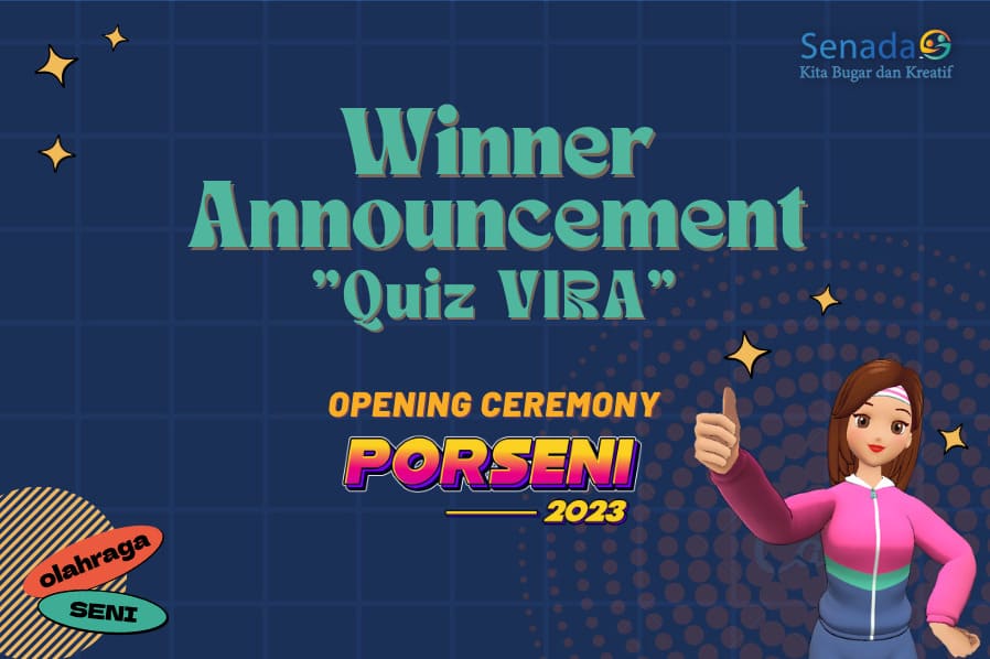 Selamat untuk para pemenang Quiz VIRA dan selamat bertanding buat semua kontingen yang berpartisipasi di PORSENI 2023!