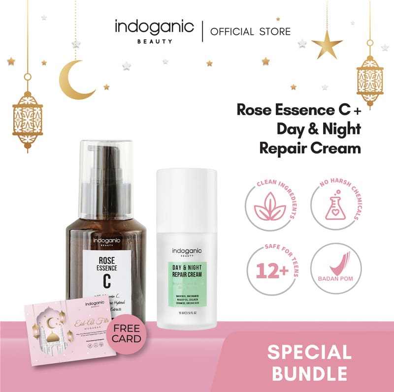 Towards the festive season, let's radiate with Indoganic! Our Rose Essence Toner infused with Vitamin C, Niacinamide, and the lightweight Day & Night Repair Cream are here to hydrate you and your loved ones throughout the Ramadan month! Get your hands on these products at www.indoganic.com today!