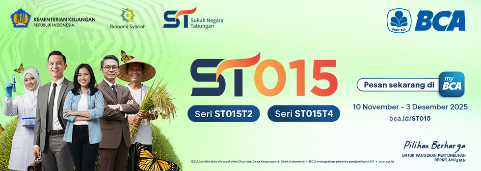 ST015 can be ordered at BCA through Investment feature on myBCA application, or KlikBCA website until December 3, 2025 at 10:00 WIB. For customers who have never invested in BCA, they can immediately register investor data or Single Investor Identification (SID) directly on Investment feature on myBCA application.