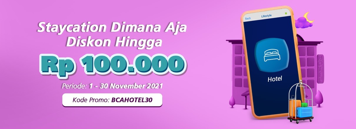- Diskon 10% maksimum Rp 100.000,- dengan Kode Promo : BCAHOTEL30
