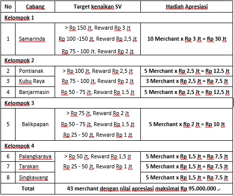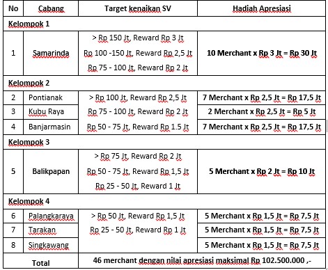 - Maksimum total pemenang hingga 46 merchant dengan nilai transaksi sales volume tertinggi pada EDC BCA dan QRIS BCA selama periode program