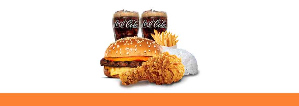 - Special Price IDR 59.091 Mozza Cheeseburger + French Fries + 1pc BK Chicken + Rice + 2 Coke