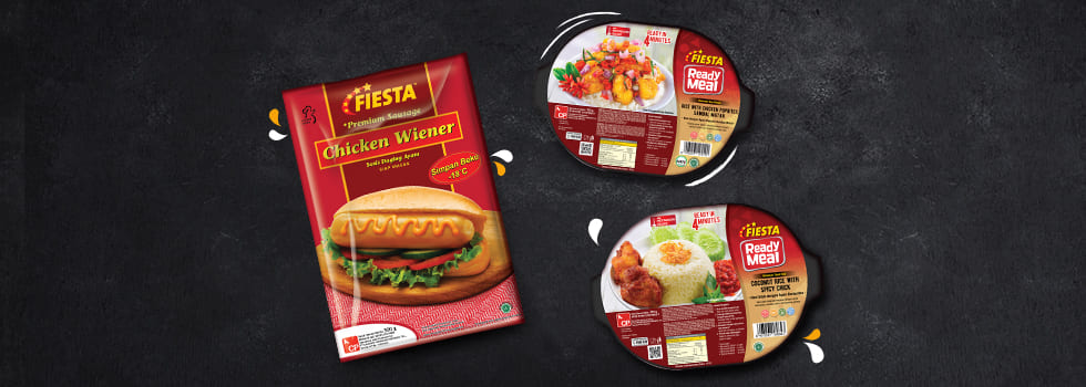 - Valid for selected products: Fiesta Rice with Geprek Chicken 320 G, Fiesta Rice with Chicken Rujak 320G, Fiesta Chicken Rendang with Rice S Box, Fiesta Beef Rendang with Rice S Box, Fiesta Rice with Chicken Satay, Fiesta Nasi Kuning Ayam Popcorn 320G, Fiesta Nasi Uduk with Spicy Chick, Fiesta Rice W Popbites Sambal Matah 320G, Fiesta Wiener Sausage 300 GR, Fiesta Cheese Sausage 300 GR, Fiesta Sosis Bratwurst 300 GR, Fiesta Sosis Currywurst 300 Gr, Fiesta Bockwurst Sausage 300 GR, Fiesta Original Sausage 300 GR, Fiesta Frankfurter Sausage 300 GR