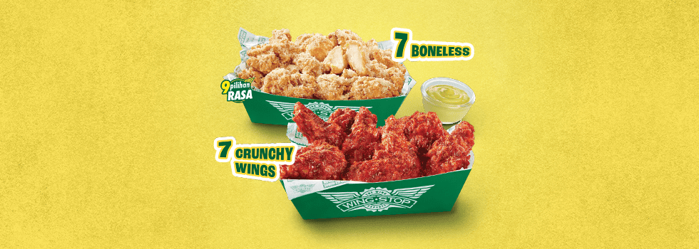 - Buy 7 Crunchy Wings, Get an Extra 7 Boneless IDR70,000 (before tax)
