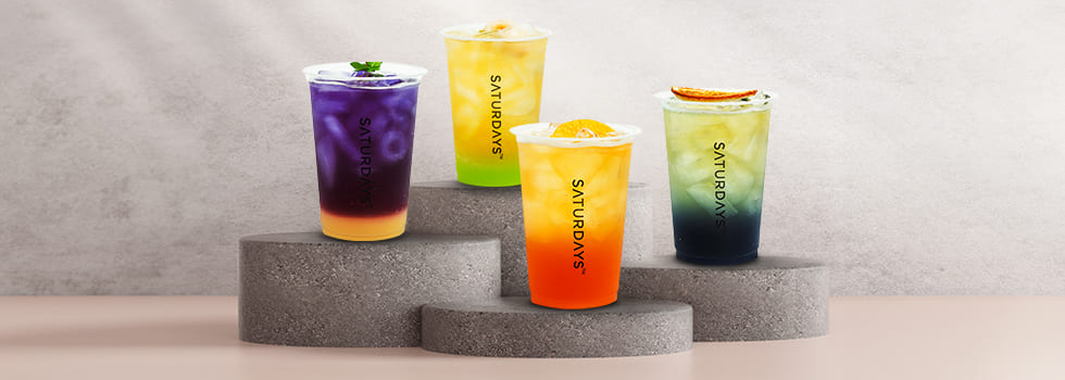 - Drink selection: Eternal Purple Bliss/Minted Peach Delight/Blue Oasis/Lychee Green Blossom