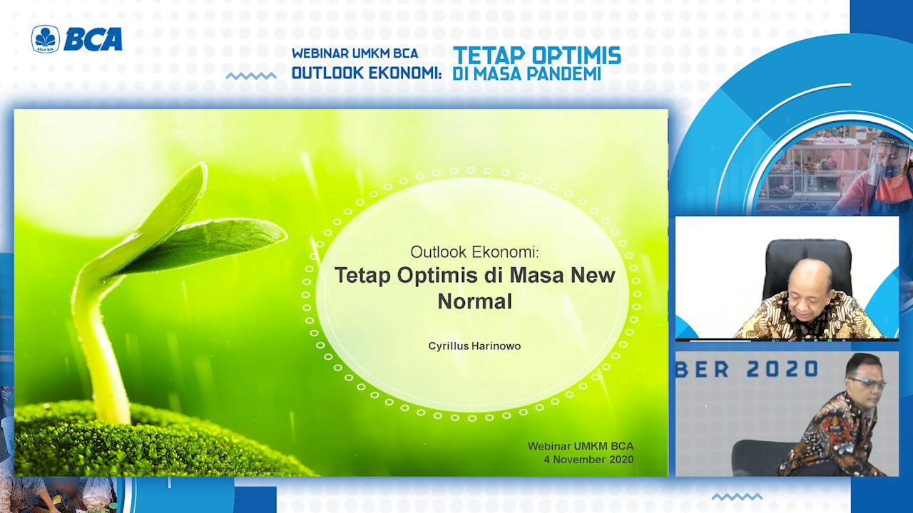 BCA Organizes “Economic Outlook: Remain Optimistic Amid the Pandemic” Webinar for MSMEs – Commissioner of BCA Cyrillus Harinowo (above) and Chief Economist of BCA David E. Sumual (below) during the MSME webinar on Wednesday Rabu (04/11). The 2020 MSME Webinar, which was followed by 386 enthused participants, was held as a form of support for BCA customers, especially in the MSME segment. Under the theme of “Economic Outlook: Remain Optimistic Amid the Pandemic”, the webinar aims to improve insights into the economic outlook and its potentials for the MSME players to be more optimistic in welcoming new business opportunities. BCA will continue its support for the MSME sector amid the recovery process from the Covid-19 pandemic. This resonates with the government’s efforts to rebalance the Indonesian economy.