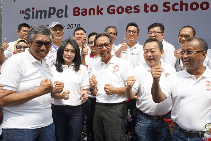 SimPel Bank Goes to School – Director of PT Bank Central Asia Tbk (BCA) Santoso (second right) together with Deputy Minister of Finance of the Republic of Indonesia Mardiasmo (left), Member of Commissioner Board of OJK for Education and Consumer Protection Tirta Segara (center) and OJK Deputy Commissioner of Capital Market Supervisory Sardjito (right) and the management of other banking institutions during the simultaneous release of car banking services to schools in connection with the “SimPel Bank Goes to School”, in the series of the Financial Institutions EXPO (FinEXPO) & Sundown Run 2018 in Jakarta, Saturday (27/10). In addition, BCA also launches Tahapan Berjangka SiMuda, a product Tabungan Berjangka for the millennials aged 18 up to 30 years. In this product, customers can make monthly deposits starting from Rp100,000/month.