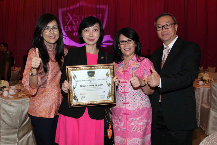 Jakarta, 22 February 2017 - PT Bank Central Asia Tbk (BCA) continues to make achievements throughout its 60 years of service in Indonesia, since 21 February 1957 until today. This time, BCA received an “Excellent” status for the category of Regular Banking in the Excellent Service Experience Award 2017. The award ceremony was a collaboration between Bisnis Indonesia daily newspaper, Carre – Center for Customer Satisfication and Loyality (Carre – CCSL), and Service Excellence magazine. The award was received by Deputy President Director of BCA, Armand W. Hartono, at Hotel Mulia, Wednesday (22/2).