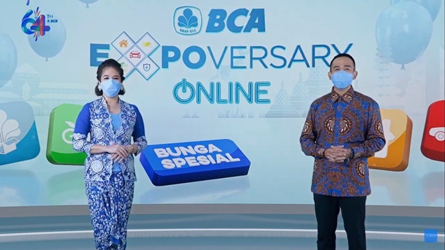 BCA Expoversary merupakan kegiatan tahunan BCA dalam rangka perayaan ulang tahun BCA yang mempertemukan nasabah dengan dealer, developer, hingga pengusaha retail dalam satu kegiatan sebagai solusi finansial terlengkap di tanah air. Kegiatan yang pertama kali dilakukan secara virtual di 2021 ini diikuti ratusan dealer, developer, dan property agent ternama di Indonesia. Selain beragam penawaran spesial solusi BCA, kegiatan ini juga memberikan berbagai edukasi bisnis melalui webinar dan edukatips.