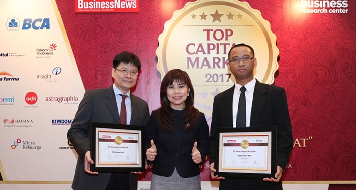 TOP Capital Market is the highes award given to issuers and capital market actors, which have high performance and a good corporate reputation. The event is initiated by BusinessNews Indonesia Magazine, in partnership with InfoVesta, IPEI Institute, IFLC (Investment & Financial Learning Center), Asia Business Research Center (ABRC), and several research institutions, business associations and other capital markets. Based on the assessment on the financial performace of 2015-2016, the publication data of semester I - 2017, GCG aspects, BCA is named the winner of TOP Capital Market 2017 under the category of TOP Shares and TOP Issuer in Bank Sector based on stock performace and mutual fund from 2014- 2016.