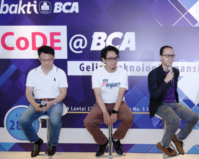 Untuk mengedukasi sekaligus menularkan semangat untuk membangun start up, BCA dan Code Margonda mengundang kurang lebih 120 peserta yang terdiri dari 62 mahasiswa PPA dan PPTI, mahasiswa bidang TI di Jabodetabek, penggiat start-up digital di Jabodetabek dan pelaku industri finansial. VP & Head of Product Amartha Aria Widyanto (kanan), Technical Evangelist Pinjam.co.id Sofian Hadiwijaya (tengah), CTO Kudo Sukan Makmuri (kiri) hadir untuk berbagi informasi mengenai perkembangan teknologi finansial di Indonesia, tantangan dan peluang perusahaan teknologi finansial serta cara pelaku teknologi finansial mengajak masyarakat untuk percaya menggunakan produk finansial mereka.