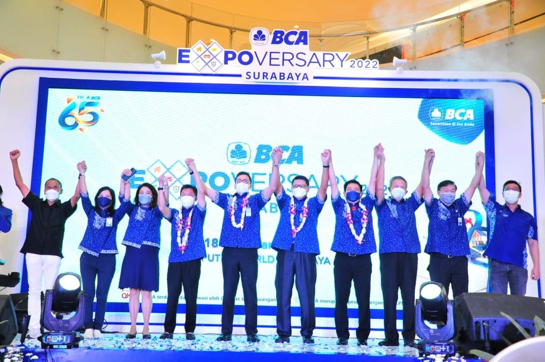 Surabaya, 18 Maret 2022 – Semarak gempita perayaan ulang tahun PT Bank Central Asia Tbk (BCA) ke-65 tahun masih terus berlangsung. Mencermati tingginya antusiasme pengunjung pada tiga minggu pelaksanaan BCA Expoversary Online 2022 di laman expo.bca.co.id dan BCA Expoversary 2022 yang dilaksanakan secara offline di ICE BSD, Tangerang pada 10-13 Maret, kini perseroan menghadirkan BCA Expoversary 2022 di Surabaya. Kegiatan akan berlangsung selama tiga hari, mulai 18 hingga 20 Maret di Mall Ciputra World, Surabaya.
