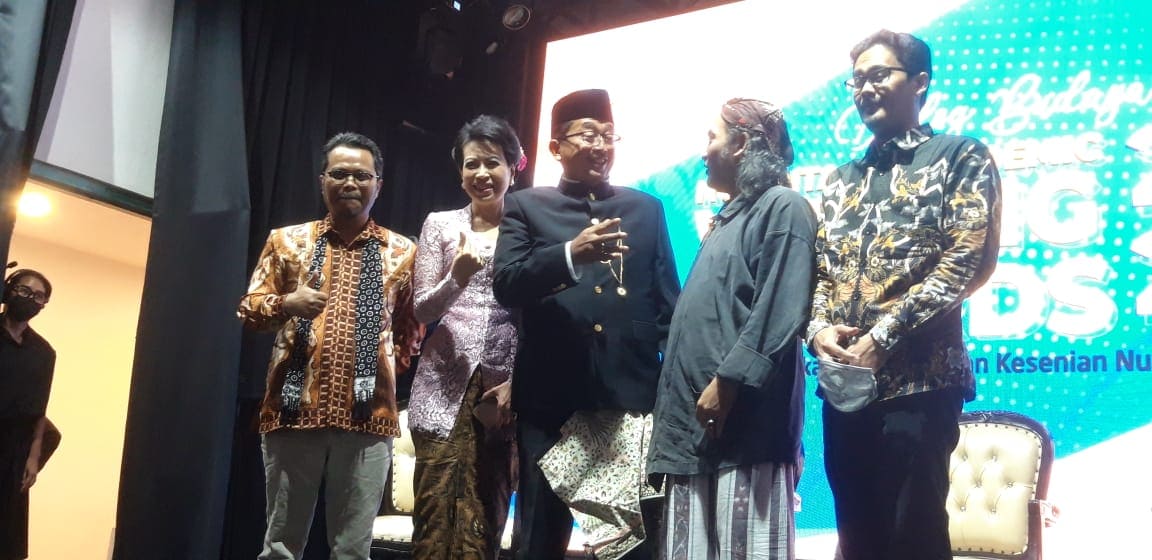 Dialog Budaya “Melestarikan dan Memajukan Kesenian Nusantara” – Direktur BCA Antonius Widodo (tengah), EVP CSR BCA Inge Setiawati (kedua dari kiri), Pendiri dan Direktur Nusantara Institute Prof Sumanto Al Qurtuby MSi, MA, PhD (kiri), Pegiat & Pakar Budaya Dr. Ngatawi Al Zastrouw (kedua dari kanan) dan Sutradara Film Nurman Hakim (kanan) dalam kegiatan Dialog Budaya pada Senin (04/07). Kegiatan ini merupakan salah satu upaya pelestarian yang diwujudkan melalui gelaran Nusantara Academic Writing Awards 2022 (NAWA).