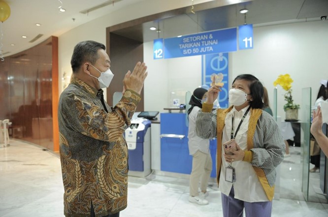 BCA Rayakan Hari Pelanggan Nasional 2022 - Presiden Direktur BCA Jahja Setiaatmadja secara langsung melayani dan menyapa nasabah istimewa pada momen Hari Pelanggan Nasional 2022 di KCU BCA Thamrin, Jakarta pada Jumat (02/09). Sejalan dengan tantangan dan dinamika perubahan yang terjadi, BCA senantiasa mengedepankan inovasi dan kolaborasi dalam rangka menghadirkan ragam solusi dan layanan perbankan yang relevan kepada segenap nasabah. Inovasi dan kolaborasi tersebut menjangkau ekosistem secara hybrid, baik online maupun offline, dengan memanfaatkan kemajuan teknologi saat ini dan tetap memperhatikan customer experience. Sebagai informasi, per semester I 2022, total volume transaksi naik 40% YoY mencapai 10 miliar transaksi, yang mayoritas berasal dari mobile banking. Pengembangan solusi digital secara konsisten menjadi modal utama untuk mempertahankan kekuatan BCA di segmen perbankan transaksi.