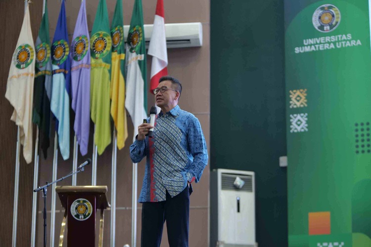 The public lecture held in the USU Auditorium carries the topic "How To Succeed In The Era of Disruptions and Uncertainties". As we all know, the Covid-19 pandemic, followed by global economic shocks, geopolitical conflicts, and technological disruptions are major challenges that have occurred in recent years. However, with the right approach, even difficult conditions like these can produce winners.