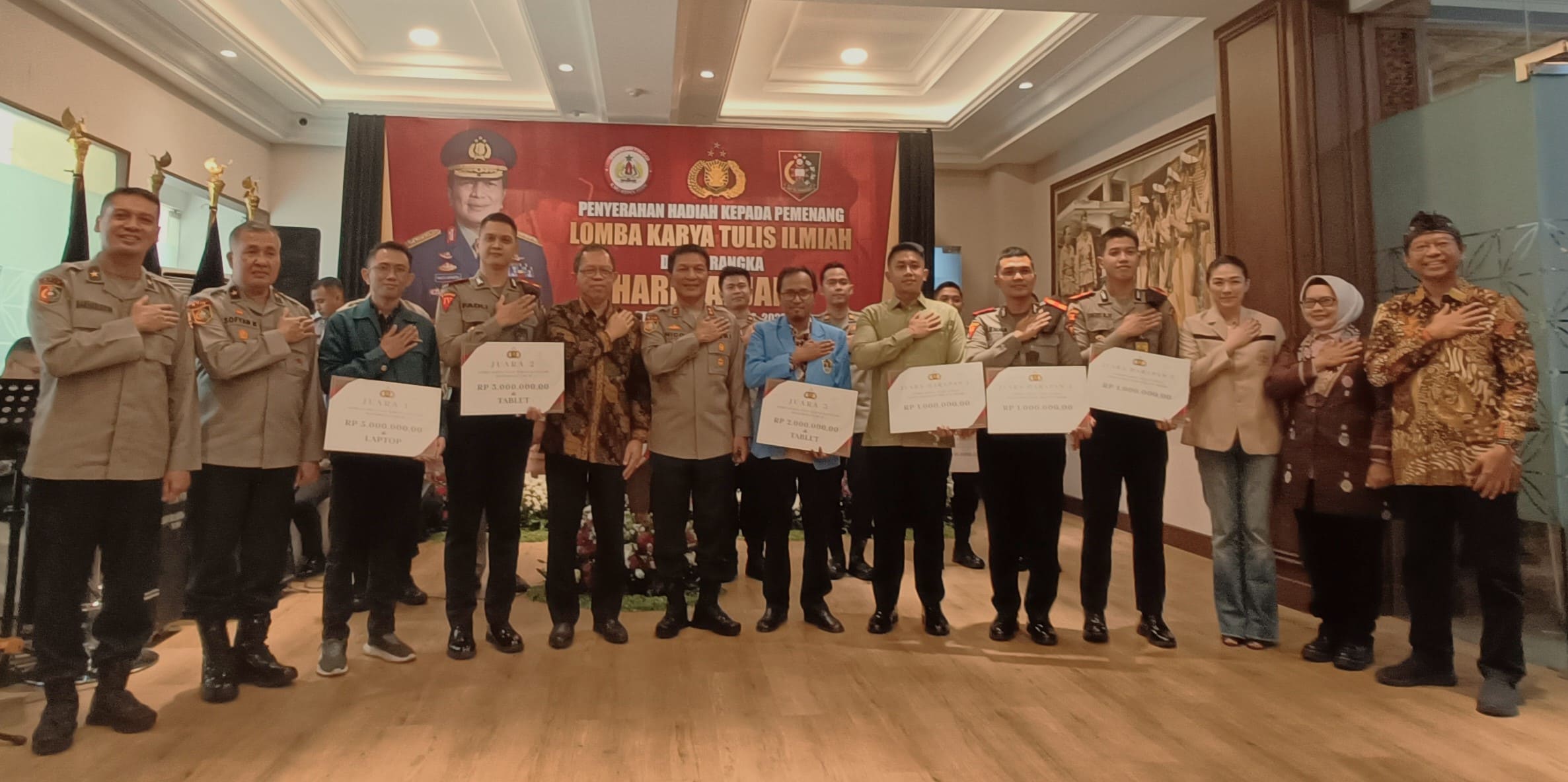 Under the theme “The Precise National Police towards an Advanced Indonesia,” the essay by AKBP Marzuki Ismail, S.Ag, MH, become the winner in the category of Civil Servants and Police Members. Meanwhile, the work by Jaka Ramdani, M. Kesos, with the title ‘Green Police Innovation through the Lens of Precise Police: Collaboration in Preventing and Addressing Damage to the Citarum River,’ won in the general public category.