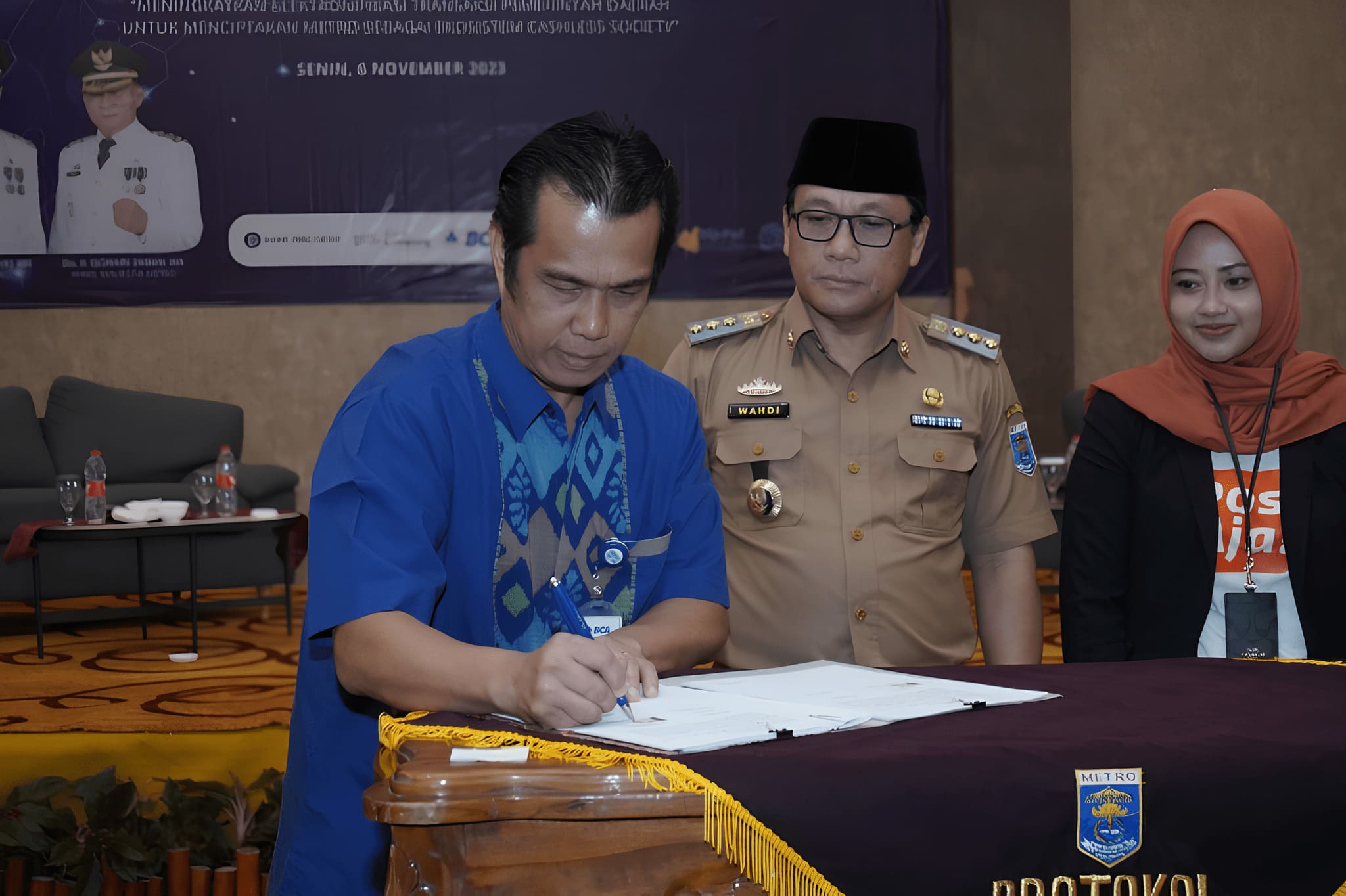 The signing ceremony took place on Monday (6/11) and was attended by the Head of KCU BCA Metro Buyung Husin, Metro Mayor dr. H. Wahdi Siradjuddin, Sp.OG(K)., M.H., Executive Manager of Metro Post Office Triana Dara Octavia, and Head of BPPRD Metro City Syachri Ramadhan.