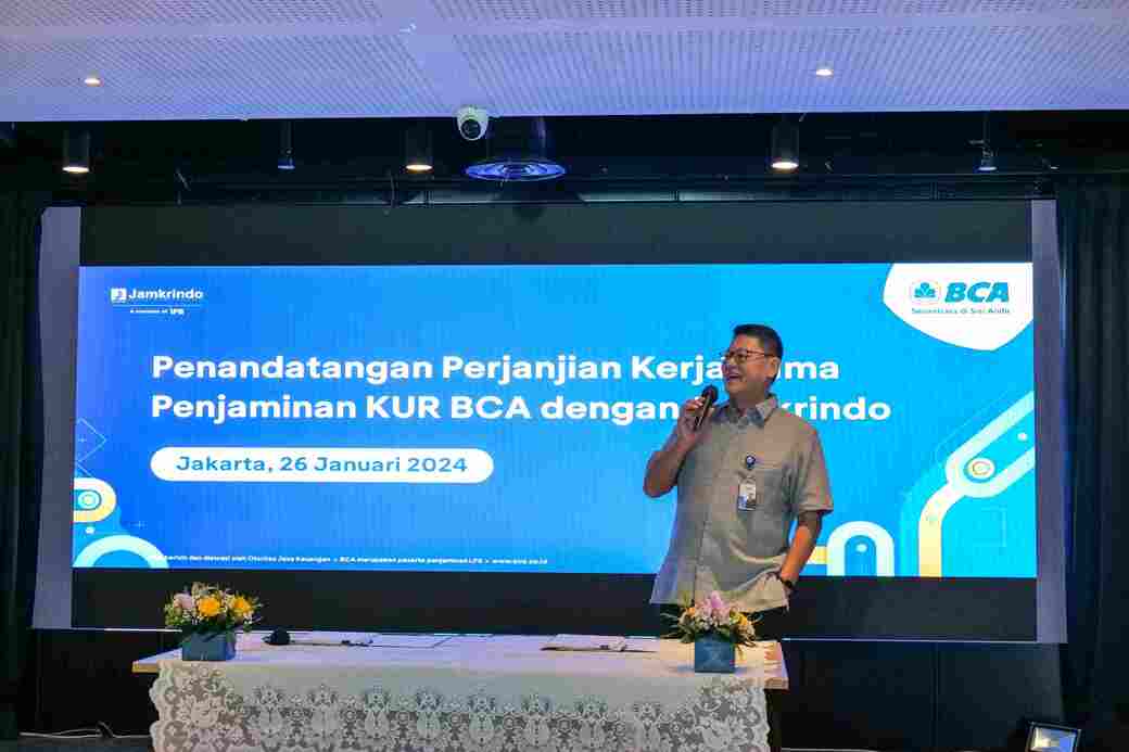 Jakarta, 27 January 2024 - As part of its commitment to support micro, small, and medium enterprises (MSMEs), PT Bank Central Asia Tbk (BCA) partnered with PT Jaminan Kredit Indonesia (Jamkrindo) to facilitate the disbursement and assurance of working capital loans (KUR). This collaboration aims to assist government programs in broadening financial accessibility for MSMEs.