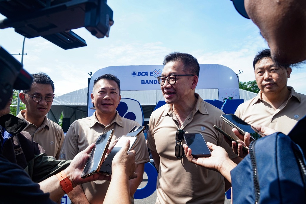 Excites Bandung with Spectacular Promos at BCA Expoversary Bandung 2024 - BCA Director Haryanto T. Budiman (second right) with BCA EVP of Consumer Loan Welly Yandoko (left), BCA Head of Regional Office I Weminto Suryadi (second left), and BCA Head of Bandung Consumer Credit Office Kakan Handoko (right) receiving media interviews after the opening ceremony of BCA Expoversary Bandung 2024 at Kota Baru Parahyangan (2/3). The event, which runs from 2 to 3 March 2024, features attractive promos ranging from 2.67% eff.p.a fixed 1-year interest rate for mortgage, to 0% DP for vehicle loans (KKB) and motorcycle financing (KSM).
