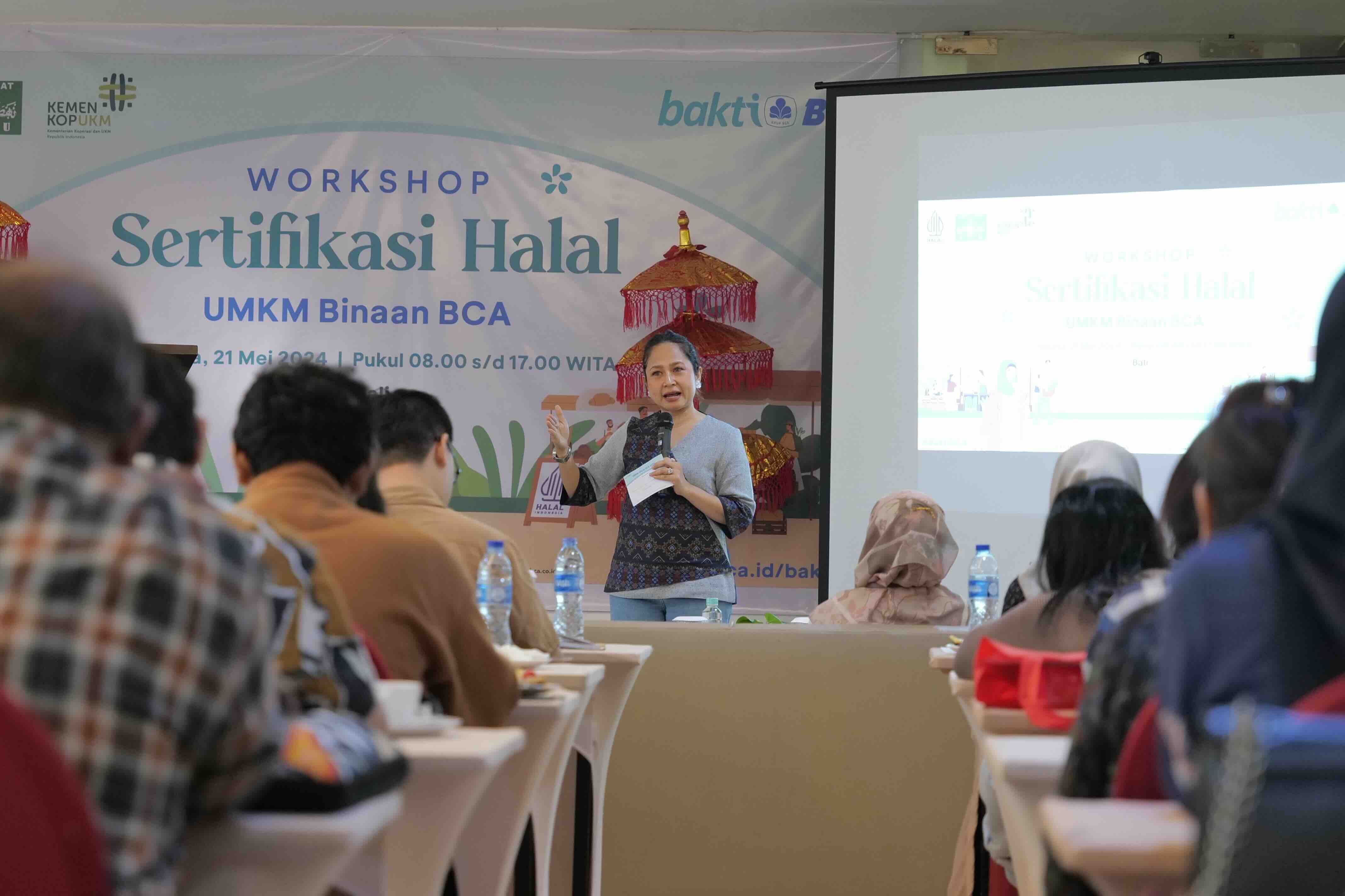 BCA Strengthens Commitment to Support Halal Economy - BCA Corporate Communication and Social Responsibility EVP Hera F. Haryn delivers remarks at the BCA's MSME Halal Certification Workshop in Kuta, Bali, on Tuesday (21/5). BCA realizes that halal certification is an inevitable requirement for products in Indonesia. Through this activity, BCA hopes to help MSMEs improve the quality and competitiveness of their products to stimulate sales growth.