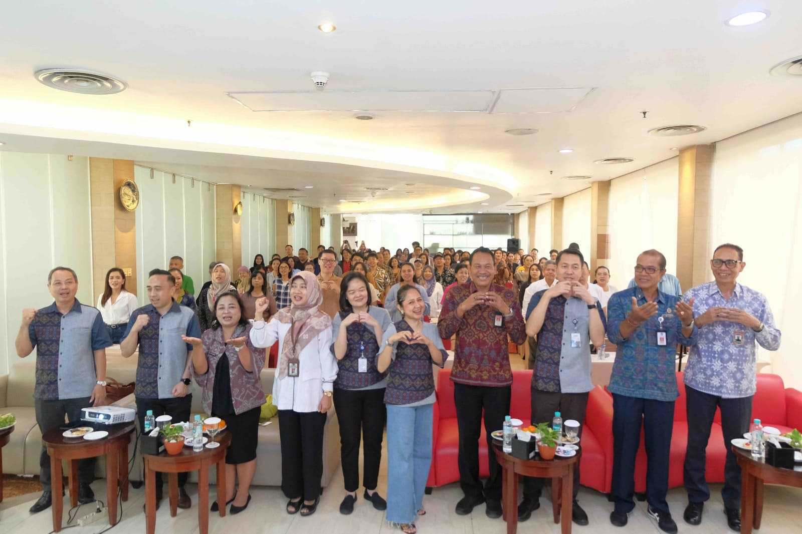 BCA's MSME Halal Certification Workshop in Bali Attended by 100 MSMEs - BCA Corporate Communication and Social Responsibility EVP Hera F. Haryn (front row, fifth from right), Head of BCA Region IV Office Harijanto (front row, third from right), Head of Bali Provincial Industry and Trade Office I Wayan Jarta (front row, fourth from right), Head of Bali Provincial SME Cooperative Office Wayan Ekadina (front row, second from right), and BCA management pose for a photo with participants of the BCA's MSME Halal Certification Workshop in Bali. BCA is committed to always supporting quality improvement of MSME products so that they have higher competitiveness in the future.