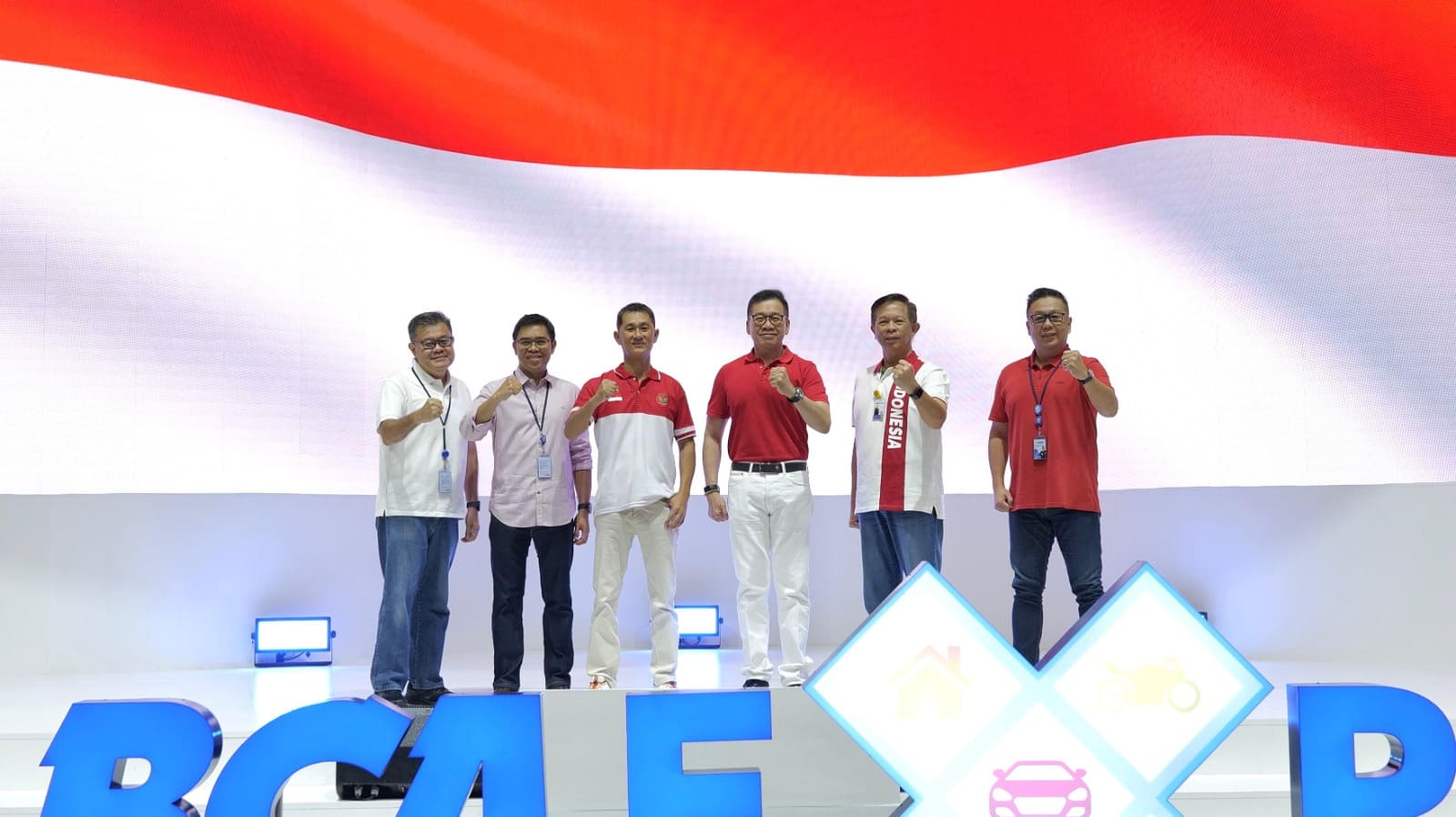 Spirit of Independence at BCA Expo 2024 - BCA Director Haryanto T. Budiman (third right), BCA Expo 2024 Committee Chairman and EVP Consumer Loan BCA Welly Yandoko (third left), BCA Expo 2024 Committee Vice Chairman and Director of BCA Finance Petrus Karim (second right) pose for a group photo on the second day of BCA Expo 2024 (17/8) which opened with the playing of the national anthem Indonesia Raya. Coinciding with the 79th anniversary of the Republic of Indonesia, this year's BCA Expo carries the theme of independence. With red and white nuances, BCA celebrated the spirit of independence not only through the best promos and banking services to visitors, but also unforgettable experiences in celebrating Independence Day.