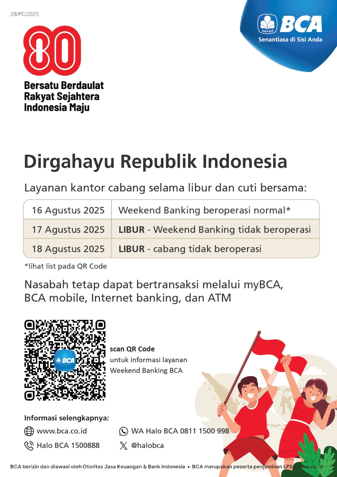 BCA is one of the leading commercial banks in Indonesia with the core business of transaction banking. BCA also offers a full range of financial services in consumer, SME, commercial and corporate segments. By the end of June 2024, BCA has the privilege of serving more than 37 million customer accounts, processing around 95 million of daily transactions through a network of 1,259 branches, 19,163 ATMs as well as internet & mobile banking services and Halo BCA contact center that can be accessed 24 hours. BCA’s presence is complemented by a number of subsidiaries focusing on vehicle financing, sharia banking, securities, general and life insurance, digital bank, remittance as well as venture capital business. BCA is committed to building lasting relationships with customers, putting people first, and making a positive impact on society at large. With more than 27,000 employees, BCA's vision is to be the bank of choice and a major pillar of the Indonesia economy.