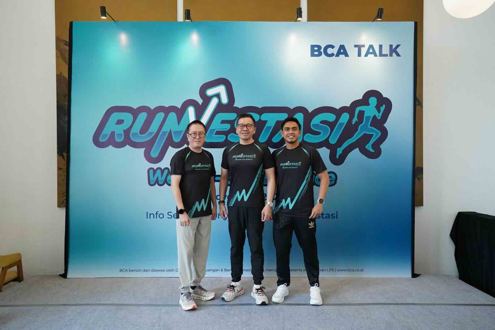 The launch of Runvestasi program was marked by a press conference attended by BCA Director Haryanto T. Budiman, BCA EVP of Wealth Management Indrawan B., and Ditto Percussion, an Ironman Triathlon Finisher.