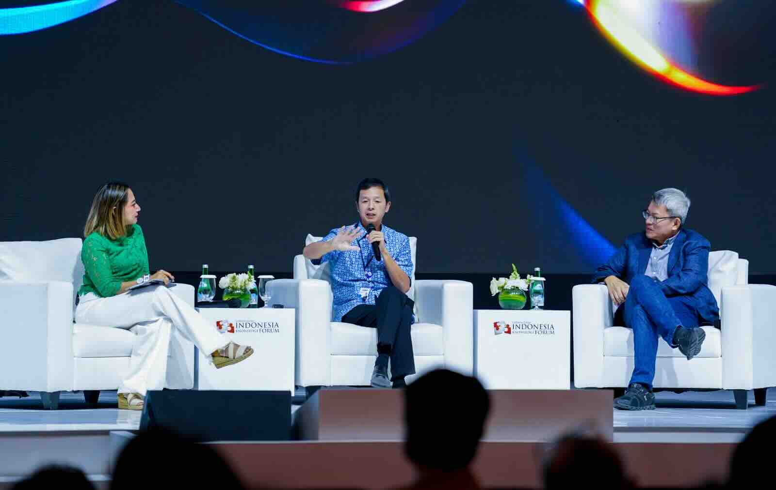 BCA Vice President Director Armand W. Hartono (center), Erajaya Group Chief Strategy and Transformation Officer Sim Chee Ping (right), and BCA EVP of Corporate Communication and Social Responsibility Hera F. Haryn (left) engaged in discussion during the Indonesia Knowledge Forum 2024 in a session titled “Plant Your Money in the Right Soil” on Tuesday (12/11). The session offered participants valuable insights into investment strategies.