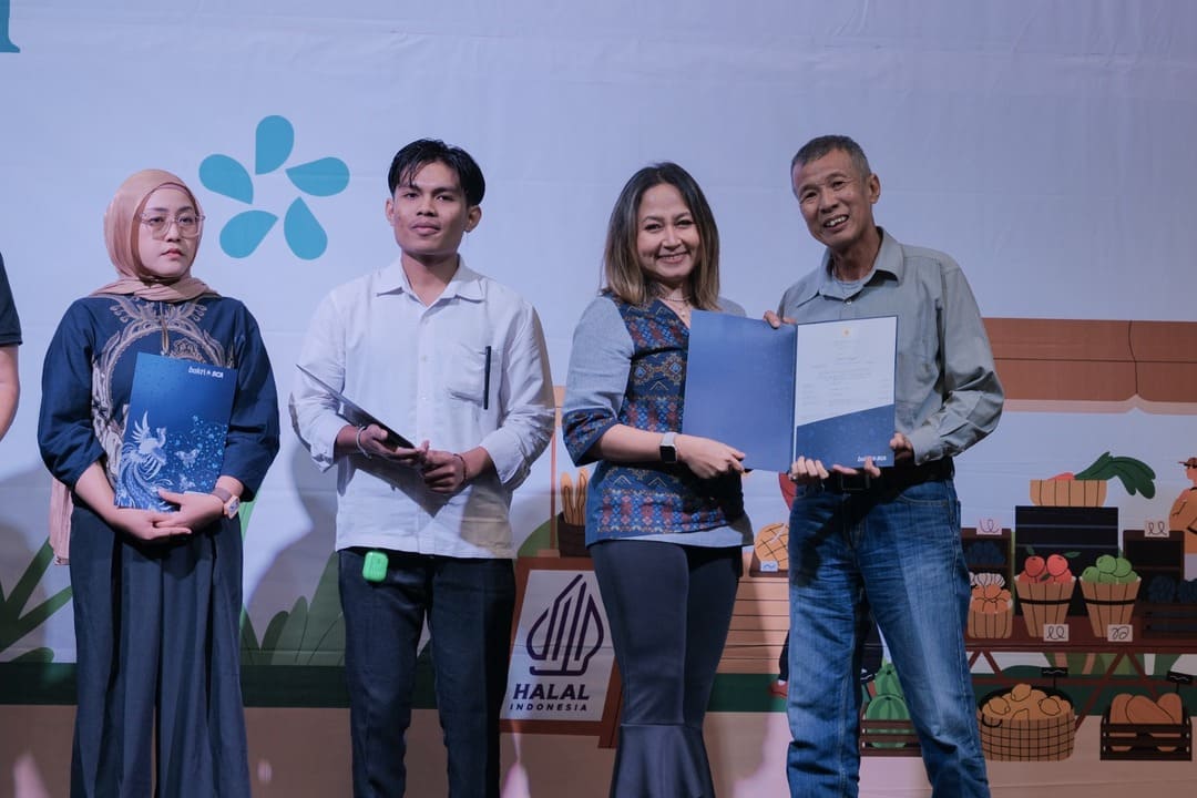 BCA's Commitment to Support Halal MSMEs, Successfully Issuing 2,000 Halal Certificates by 2024 - BCA Director John Kosasih (second left) hands over a halal certificate to one of the MSMEs participating in the “Handover of 147 Halal Certificates to 147 MSMEs from Bali” at the Bhumiku Convention Center, Denpasar City, on Tuesday (21/1). The event is part of BCA's commitment to facilitate the issuance of 2,000 halal certificates for MSMEs in Indonesia throughout 2024. This number has doubled compared to the halal certification facilitated by BCA in 2023.