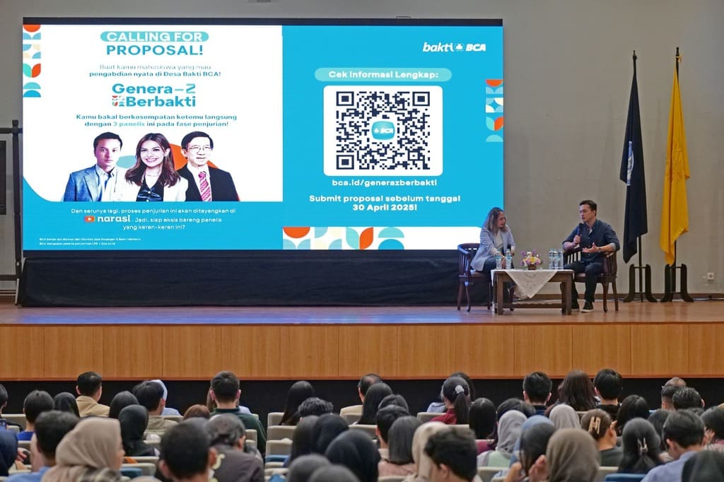 BCA Bakti Ambassador Invites Students to Serve through Genera-Z Berbakti Program - Accompanied by BCA EVP Corporate Communication and Social Responsibility Hera F. Haryn (left), BCA Bakti Ambassador Nicholas Saputra (right) joined the BCA Berbagi Ilmu series at UI. On that occasion, Nicholas invited student participants to participate in a competition entitled “Genera-Z Berbakti” by submitting proposals for community service programs in 4 BCA Bakti Villages. Registration for this competition is still open until April 30, 2025.