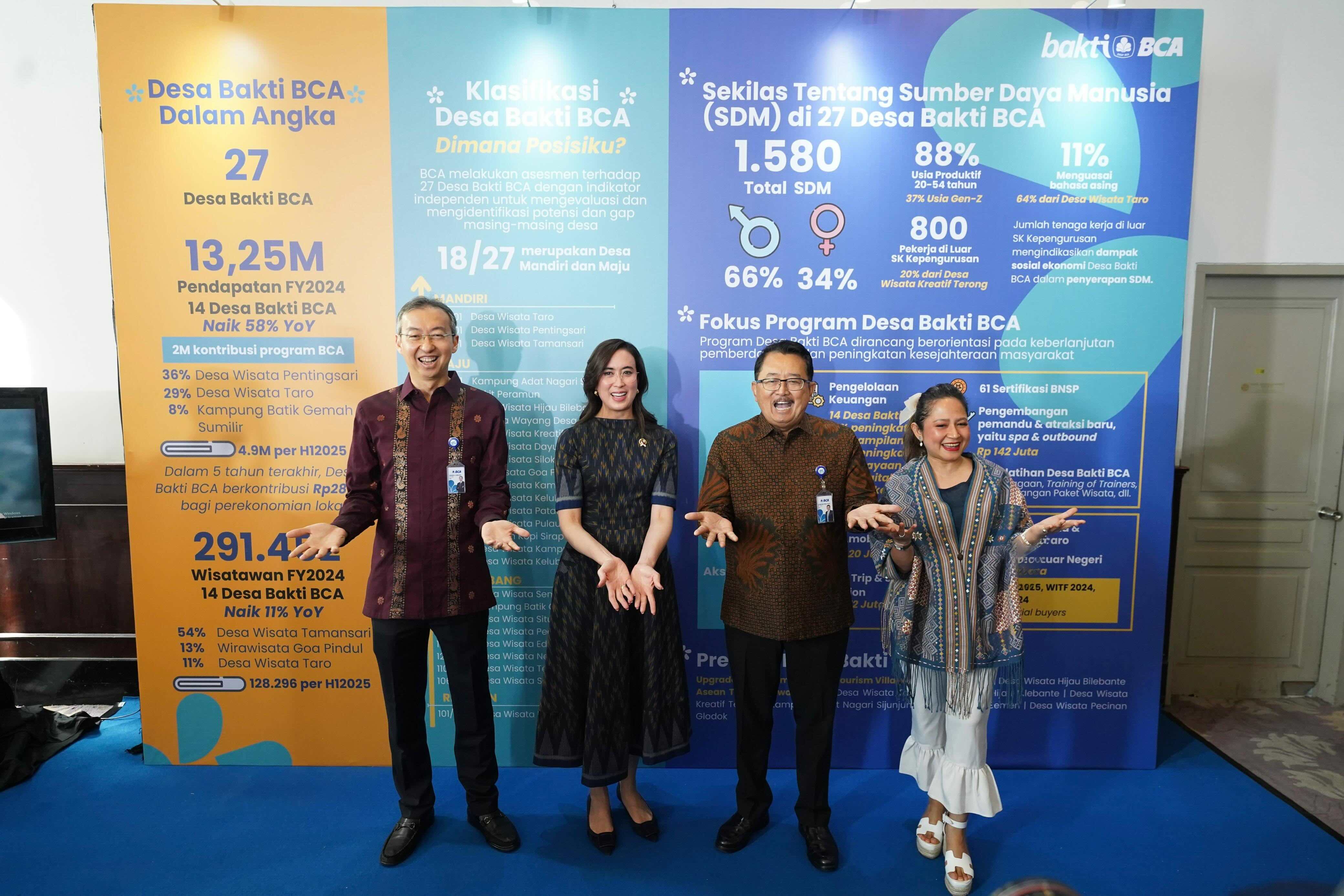 Currently, BCA provides intensive assistance to 27 villages spread across Sumatra, Java, Bali, Kalimantan, Sulawesi, East Nusa Tenggara, West Nusa Tenggara, and Maluku. Several Bakti BCA Villages have also received national and international recognition. Most recently, six assisted tourism villages earned prestigious awards at the ASEAN Tourism Awards 2025, namely Nagari Sijunjung Traditional Village, Terong Creative Tourism Village, Semen Tourism Village, Taro Tourism Village, Glodok Chinatown Tourism Village, and Bilebante Green Tourism Village. In addition, Taro Tourism Village and Bilebante Green Tourism Village were selected for the Best Tourism Villages Upgrade Program by UNWTO in 2023.