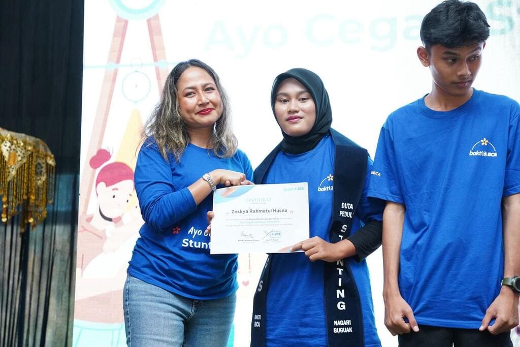 BCA Encourages Nutrition and Health Behavior Change to Prevent Stunting - BCA Corporate Communication & Social Responsibility EVP Hera F. Haryn (third from left, top photo), together with BCA Padang Main Branch Office Head Edy (second from left, top photo), provided nutrition education to mothers and toddlers in Nagari Guguak, Padang Pariaman, beneficiaries of the Ayo Cegah Stunting program, focusing on healthy meal preparation in accordance with balanced nutrition standards. The Ayo Cegah Stunting program serves as a complement to government interventions in ensuring sustainable nutrition and health behavior change, involving local champions (middle photo), posyandu cadres, and participants of the Adolescent Field School. Participants of the Adolescent Field School were also formally appointed as Adolescent Stunting Ambassadors (bottom photo), reinforcing the role of the younger generation in spreading positive messages on nutrition, health, stunting prevention, and healthy lifestyles within their communities.