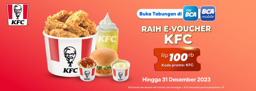 | 1 | Pilih Kode Promo “KFC” pada saat Buka Tabungan di BCA mobile atau myBCA |